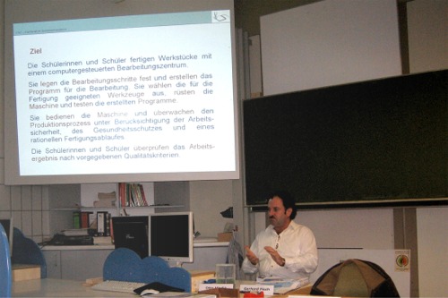 Fachlehrer Gerhard Fisch von der Berufsschule Cham stellt die Rahmenbedingungen für die CNC-Fachkraft vor |
