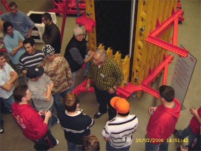 Die Schüler profitieren von internationalen Erfahrungen Die mehrstündige Führung durch die ?Welt der Schalungen? wurde von einem Firmenmitarbeiter geleitet, der seine Erfahrungen auf Baustellen rund um den Globus gesammelt hat.
