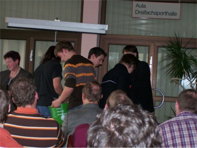 | Am 01.02.2007 fand der Kreisentscheid des Berufswettbewerbes der deutschen Landjugend an der Staatlichen Berufsschule Wiesau statt. Als Träger des Wettbewerbes fungiert der Deutsche Bauernverband. Mit dem Wettbewerb, der in den Sparten Landwirtschaft, Hauswirtschaft, Forstwirtschaft, Tierwirtschaft und Weinbau bundesweit stattfindet, soll der Öffentlichkeit die Vielfalt der grünen Berufe dargestellt werden. Die Auszubildenden und Schüler können dabei ihre hohe Qualifikation unter Beweis stellen. Die Sieger des Kreisentscheides vertreten ihren Landkreis beim Bezirksentscheid oder bei möglichen Entscheiden auf Landes- und Bundesebene. | |