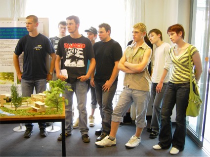 Das Berufsgrundschuljahr Holztechnik an der Berufsschule Wiesau hat auf Anregung des InitiAktivkreises zur Gestaltung des Bundesnaturschutzgebietes ´Waldnaabauen´ Vorschläge erstellt. Zusätzlich zu ihrem normalen Stoff haben die Schüler eine ganze Reihe von verschiedenen Sitzgruppen und Schildern entwickelt und gefertigt. Dabei stellte sich heraus, dass Schüler mit 16-17 Jahren durchaus kreative Vorschläge ausarbeiten können. Die Vorschläge der Schüler sind zur Zeit in der Raiffeisenbank Tirschenreuth zu besichtigen. Dabei geben die angehenden Schreiner natürlich Lösungen aus heimischen Holz ganz klar den Vorzug vor Metall. Wenn gewisse konstruktive Holzschutzmaßnahmen beachtet werden, ist Holz auch im Außenbereich ein langlebiger Werkstoff. Zudem sichert er heimische Arbeitsplätze. |